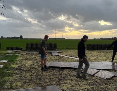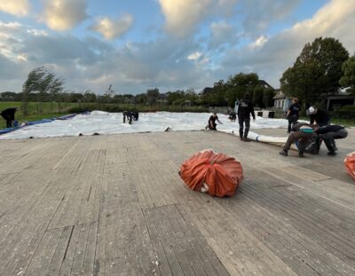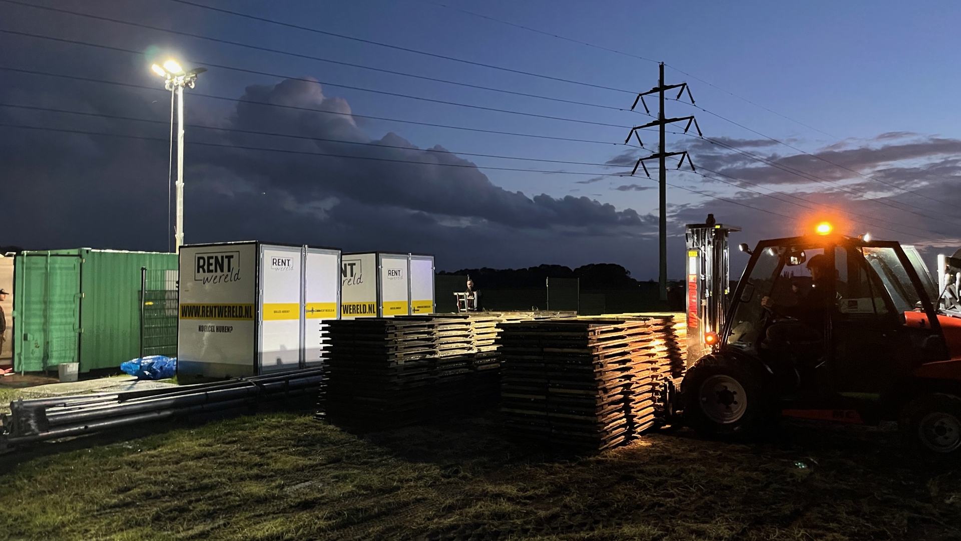 ’s Avonds hebben we de tent met veel wind en wat regenbuien afgebroken en dinsdag zijn de laatste containers opgehaald.