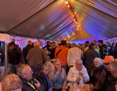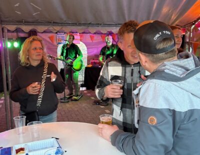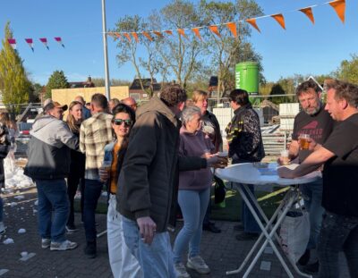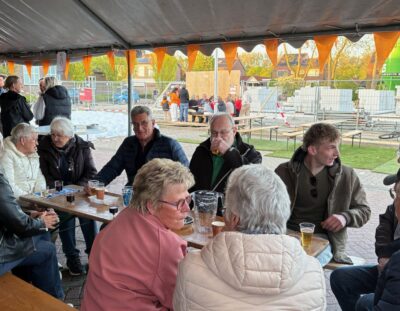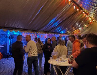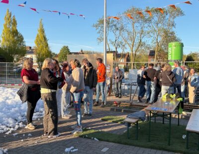 We kunnen terugkijken op een geslaagde ‘Koningsnacht’! Zaterdagochtend is het bestuur om 9 uur begonnen met opbouwen van de tenten op het parkeerterrein aan het Schoolpad. Schoolpad is trouwens de nieuwe naam voor dit stukje parkeerterrein en straat waar ook de nieuwe huizen gebouwd worden.