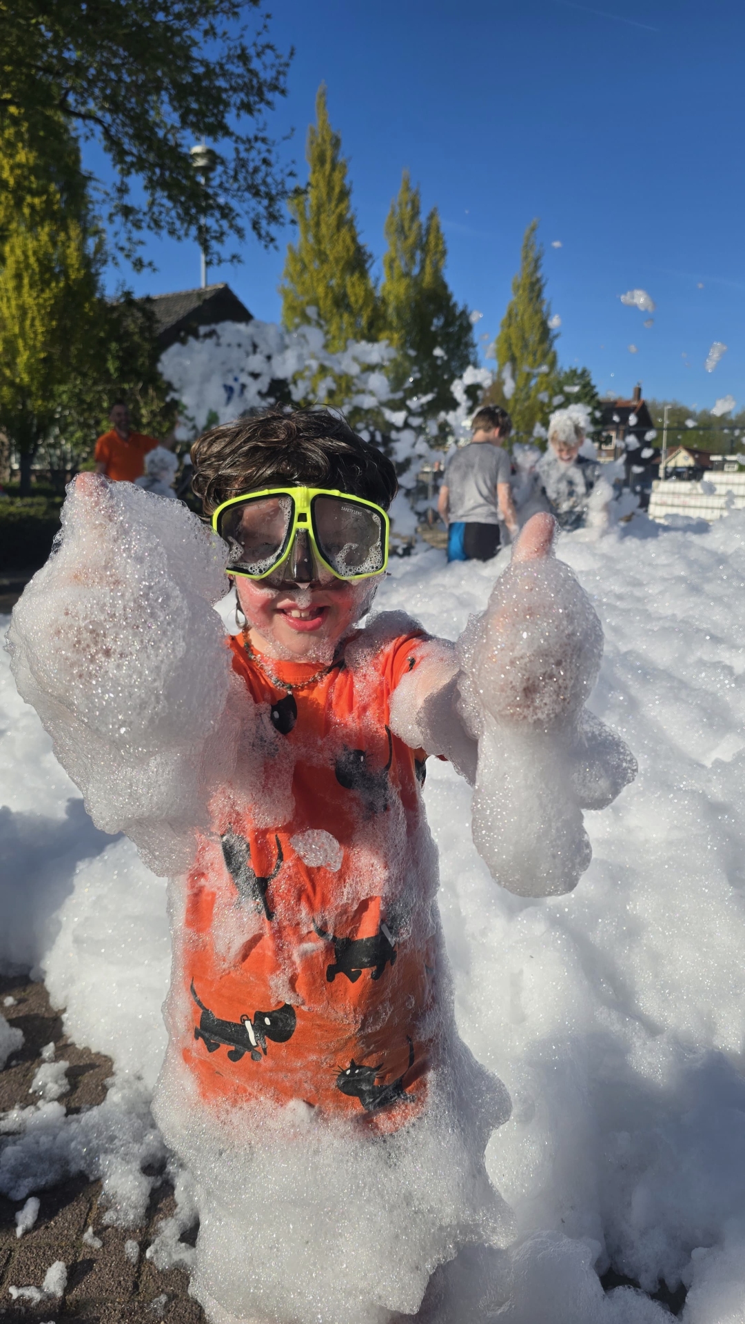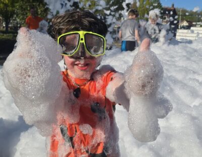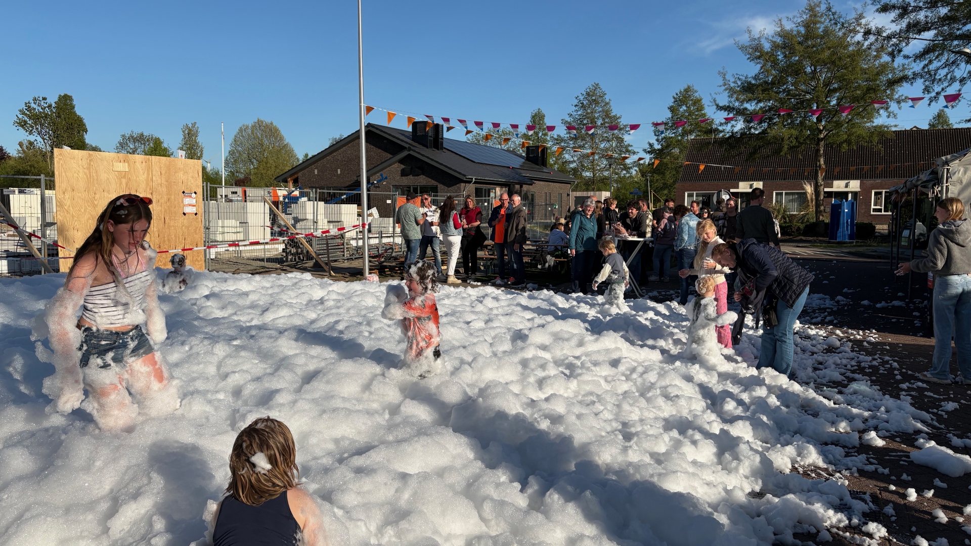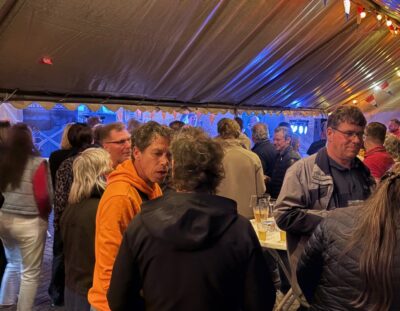 Vanaf 17 uur was het terrein en de tent geopend voor publiek en langzaam aan kwamen er steeds meer volwassenen en kinderen. Die laatste natuurlijk in eerste instantie voor de schuimparty die na een uur begon en een dikke laag schuim in de hoek van het terrein achterliet waar de kinderen in verdwenen. Voor de kinderen was er voor het eerst in lange tijd weer een lampionnenoptocht. Het leek in eerste instantie erg stil met het aantal kinderen met een lampion maar als een duveltje uit een doosje kwamen er ineens een boel kinderen met lampionnen tevoorschijn. Iets na 21 uur startte hun tocht door het dorp voorafgegaan door Grob met zijn trekkertje en muziek.